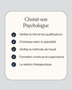 Comment choisir son psychologue ? Avec la multiplication des offres, il peut être difficile de s’y retrouver. Voici quelques repères pour vous aider à faire le bon choix. 1. Vérifiez le titre et les qualifications Le titre de psycholog... Lire plus...